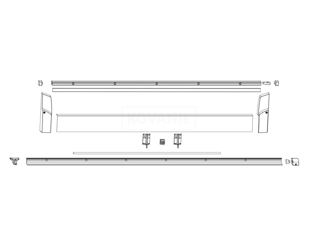 Cena je za sadu spodní kolejnice, horní kolejnice, spojovací táhlo o průměru 8mm, boční krytky a překrytí na křídlo.