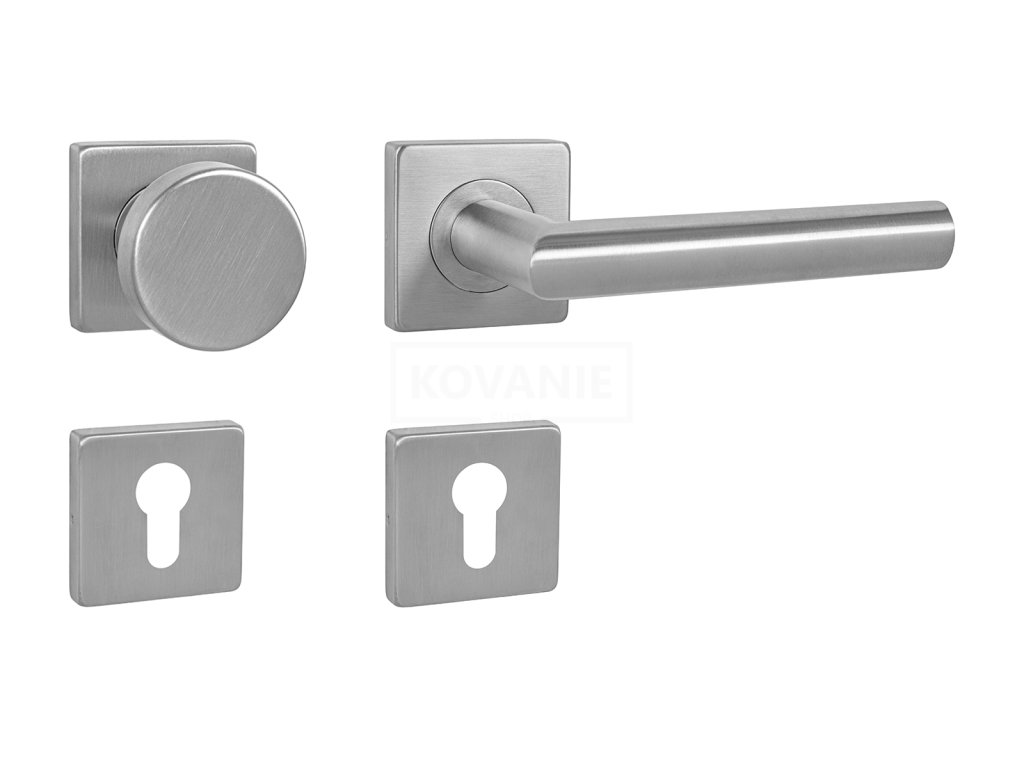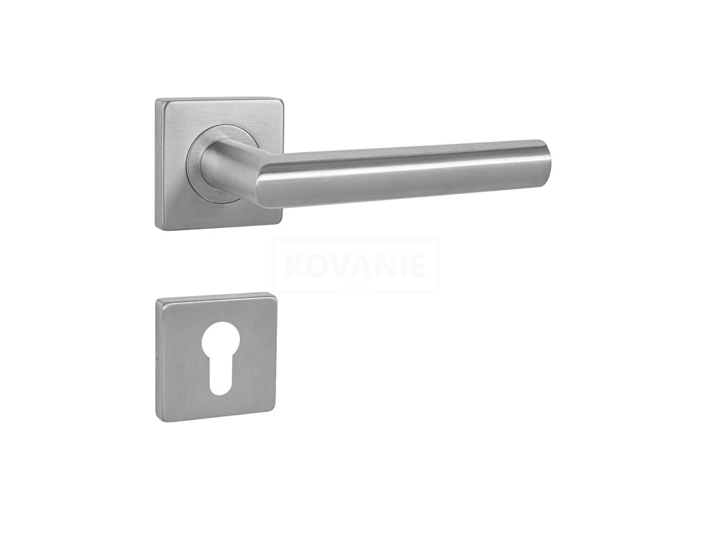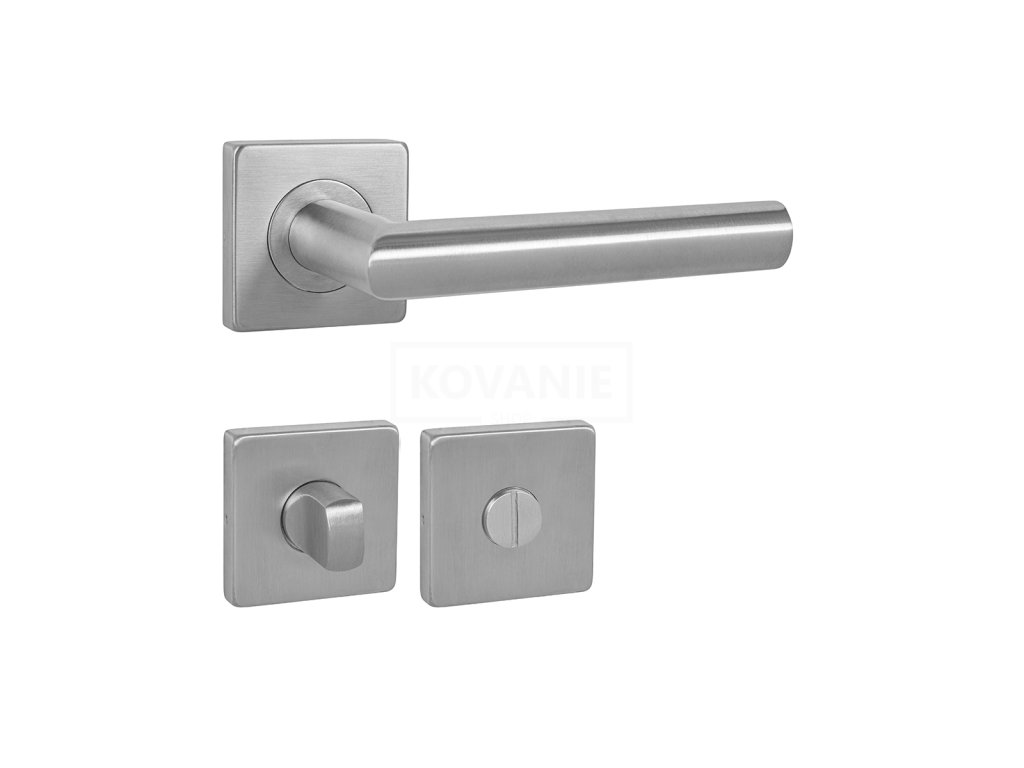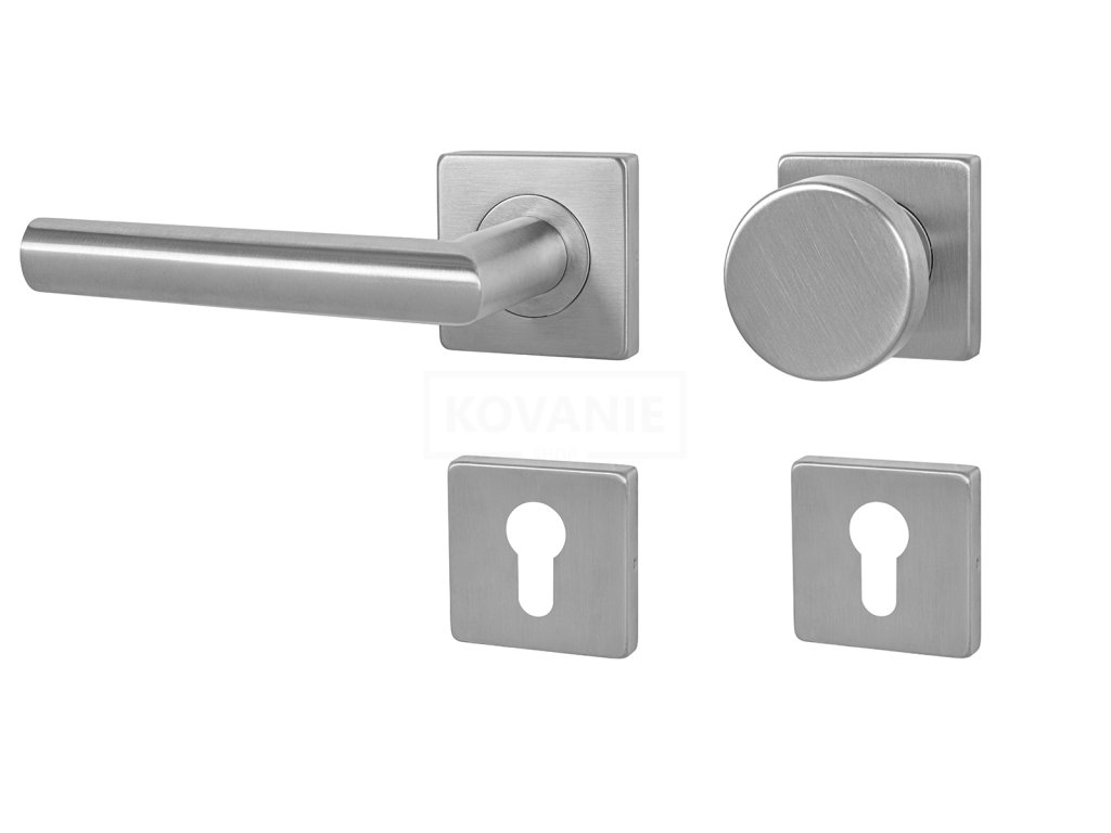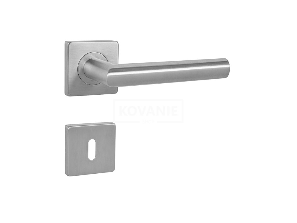Rozetová klika na interiérové dveře s hranatou rozetou je vyrobena z vysoce kvalitní nerezavějící oceli, známé jako nerez a je povrchově upravena. Rozeta má rozměry 54 mm x 54 mm a tloušťku 9 mm. Je barevně stabilní a odolná vůči opotřebení. Kování je testováno dle normy ČSN EN 1906: 2012 na 200 000 cyklů.